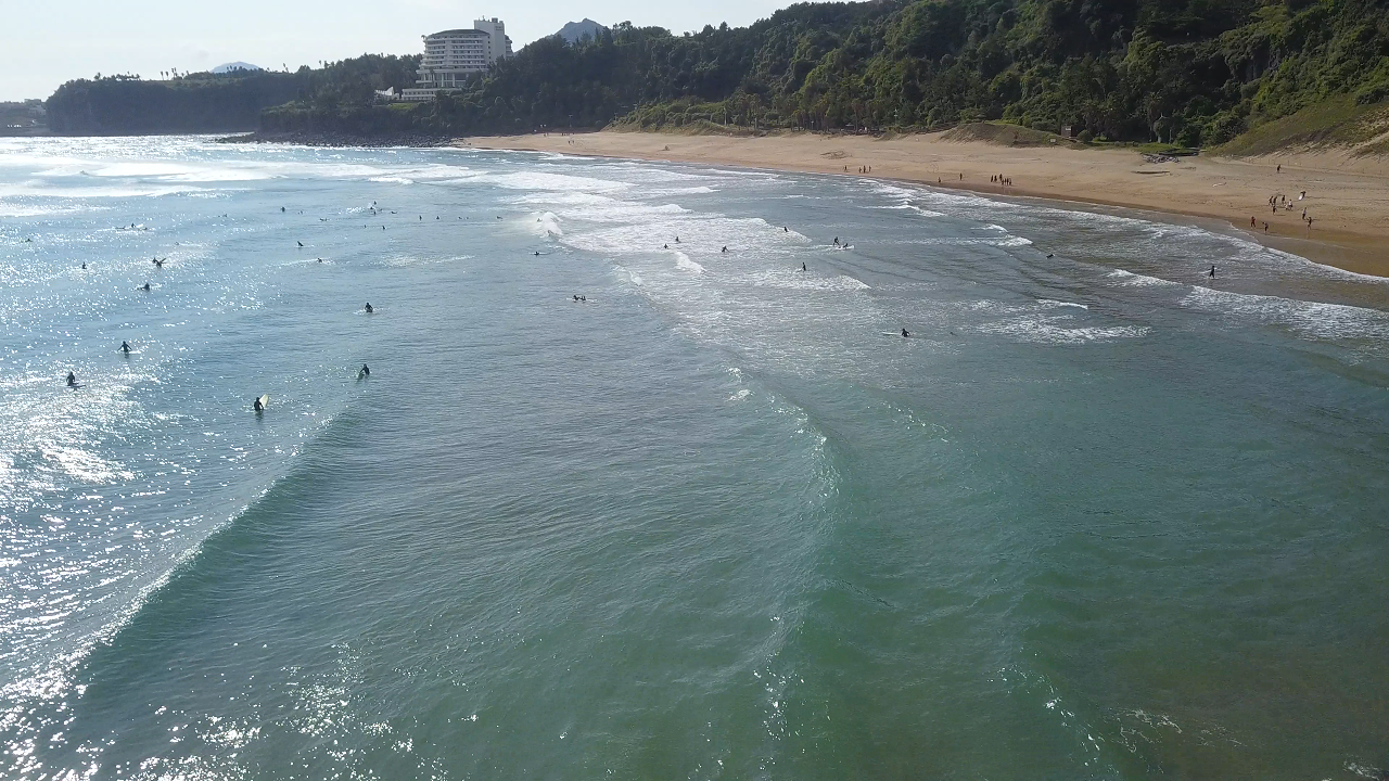 넓은 백사장과 높이 2m까지 이는 파도가 특징이며,